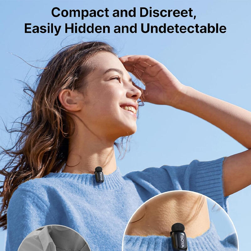 BOYA Mini 16 Ultracompact 2.4GHz Wireless Microphone System Black არის კომპაქტური უკაბელო მიკროფონის სისტემა, რომელიც 2.4GHz კავშირს იყენებს სუფთა და სტაბილური აუდიოსთვის. მისი ულტრაკომპაქტური დიზაინი მოსახერხებელია vlog, ინტერვიუსა და ყოველდღიური ჩანაწერებისთვის.
